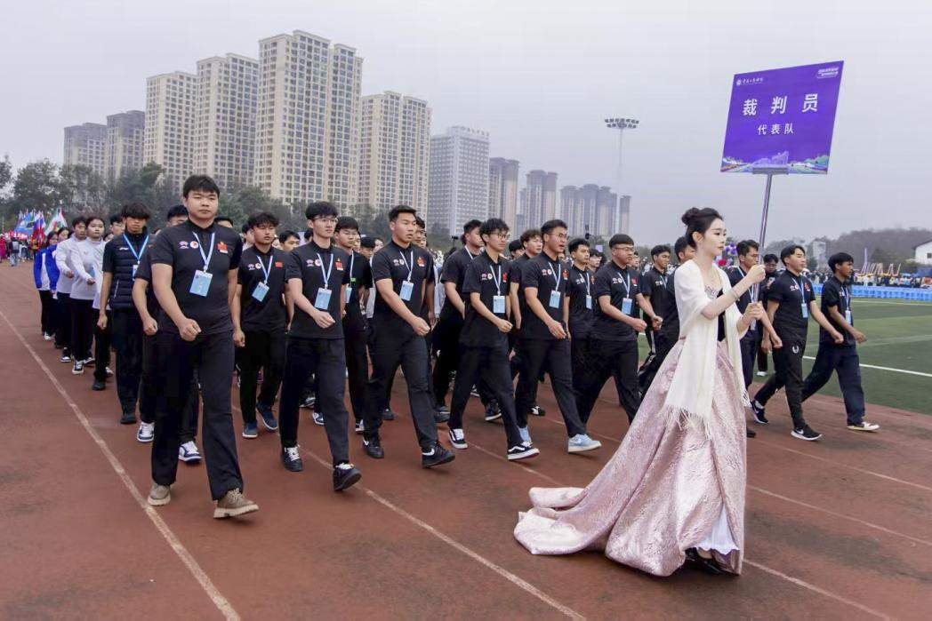 12月3日,云南体育产业学院成立大会暨第十七届冬季运动会开幕式在云南工商学院隆重举行。民进中央副主席、民进云南省委会主委李玛琳,原云南省政协副主席罗黎辉,云南省体育局局长杨中华等主管部门代表,嵩明县及多个地州驻昆机构代表,以及多位奥运冠军、世界冠军,20余名知名企业代表、40余名教育界同仁齐聚现场;云南工商学院执行校长李孝轩、党委书记李国琼、校长蒋永文等校领导班子出席,与5千余名学校师生代表共同见证这一历史时刻。