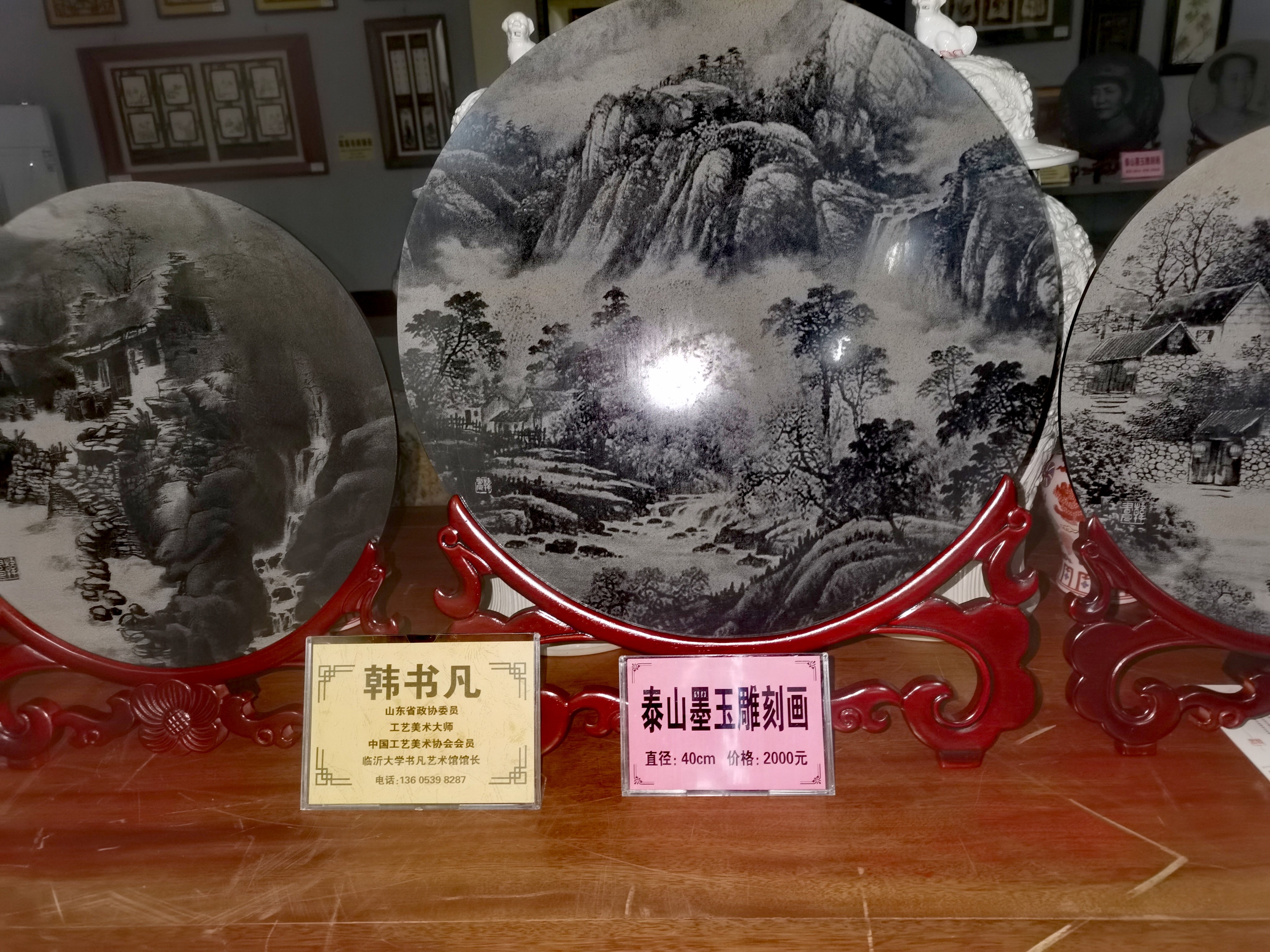 山东省政协委员、中国工艺美术家协会会员韩书凡先生捐赠了《泰山墨玉刻画》。