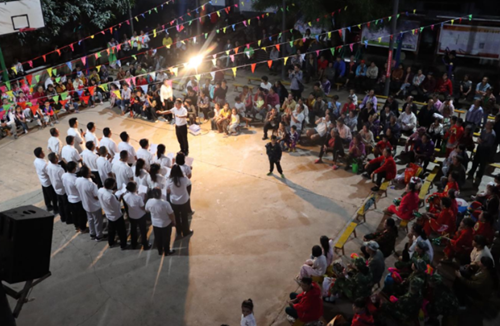 本次文艺晚会在黄瓜园镇集镇小广场以及苴林村委会苴林大村分别开展,文艺节目包含歌舞表演、花灯、电声合奏、吉他弹唱、大合唱等,黄瓜园镇花灯社、文艺队、辖区内幼儿园、镇村干部都积极参与,纷纷登台,节目形式多样,内容丰富多彩。既有用熟悉的旋律讲述家乡发展故事、展现乡村新风貌的自编曲目《元谋花灯唱起来》《绿色蔬菜扎实好》,也有传递爱国情怀的经典红歌《今天是你的生日我的中国》《我爱你中国》《红梅花儿开》等曲目,表演者们以激昂的歌声点燃现场热情,用精彩的表演,引得台下掌声、喝彩声此起彼伏。