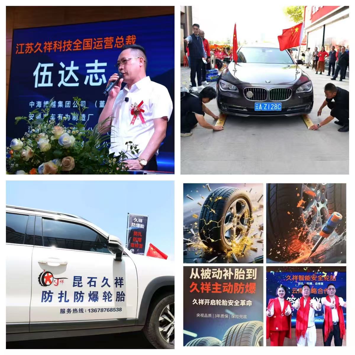 云南久祥董事长赵加州在致辞中表示,公司将以“防扎、防爆、自修复”安全轮胎为核心,为西南地区消费者筑牢出行保障,同时为合作伙伴搭建共赢发展平台。