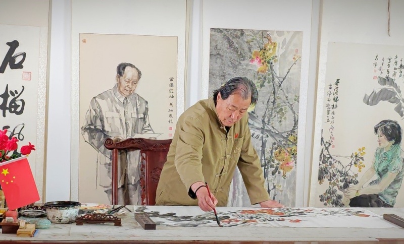 “千年结实虬龙姿,月到中秋挂满枝;最是向阳开口笑,人生平安才是福。”这不仅是他的题画诗,更是他人生的生动写照。作为享受政府津贴的科技拔尖人才,他的足迹遍及天山雪线、藏区牧场,深入边防、走进校园,让石榴画成为传递美好的使者;作为政协委员,他积极提案建言,将石榴产业融入乡村振兴的宏伟蓝图。在榴园书画院里,他提携后辈的身影,犹如老榴树庇护着新苗。
